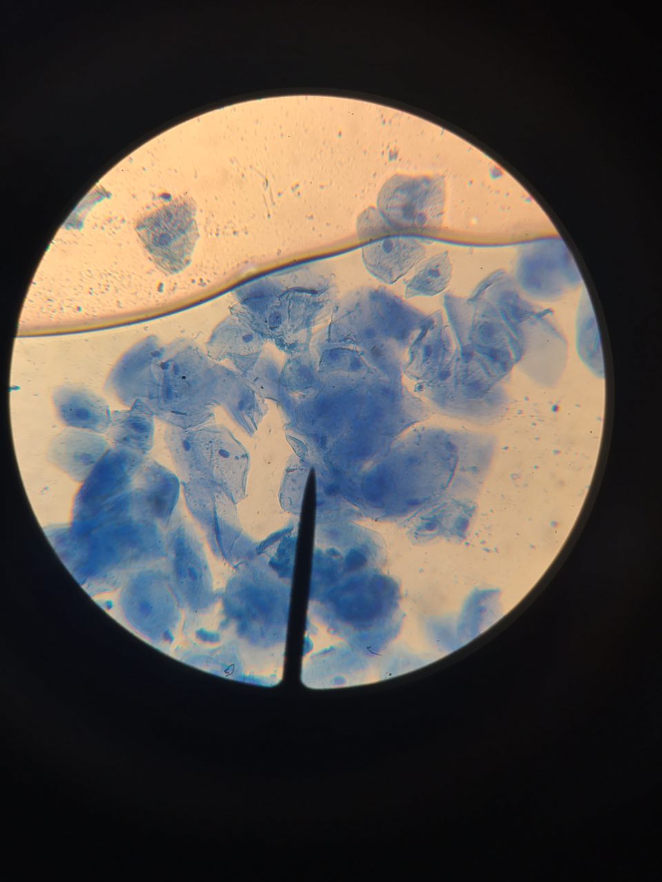 observado células al microscopio ,para ello las hemos teñido con azul de